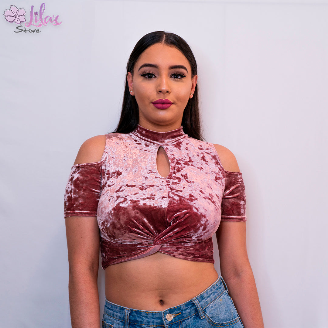 Pink Velvet Wrap Crop Top-Lala