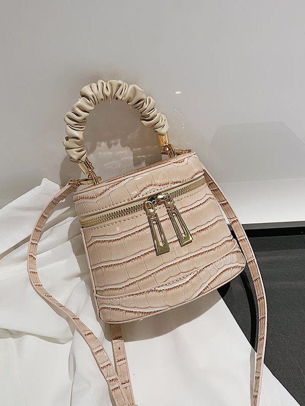 Double Zipper Pleated Handle Trendy Shoulder Bags